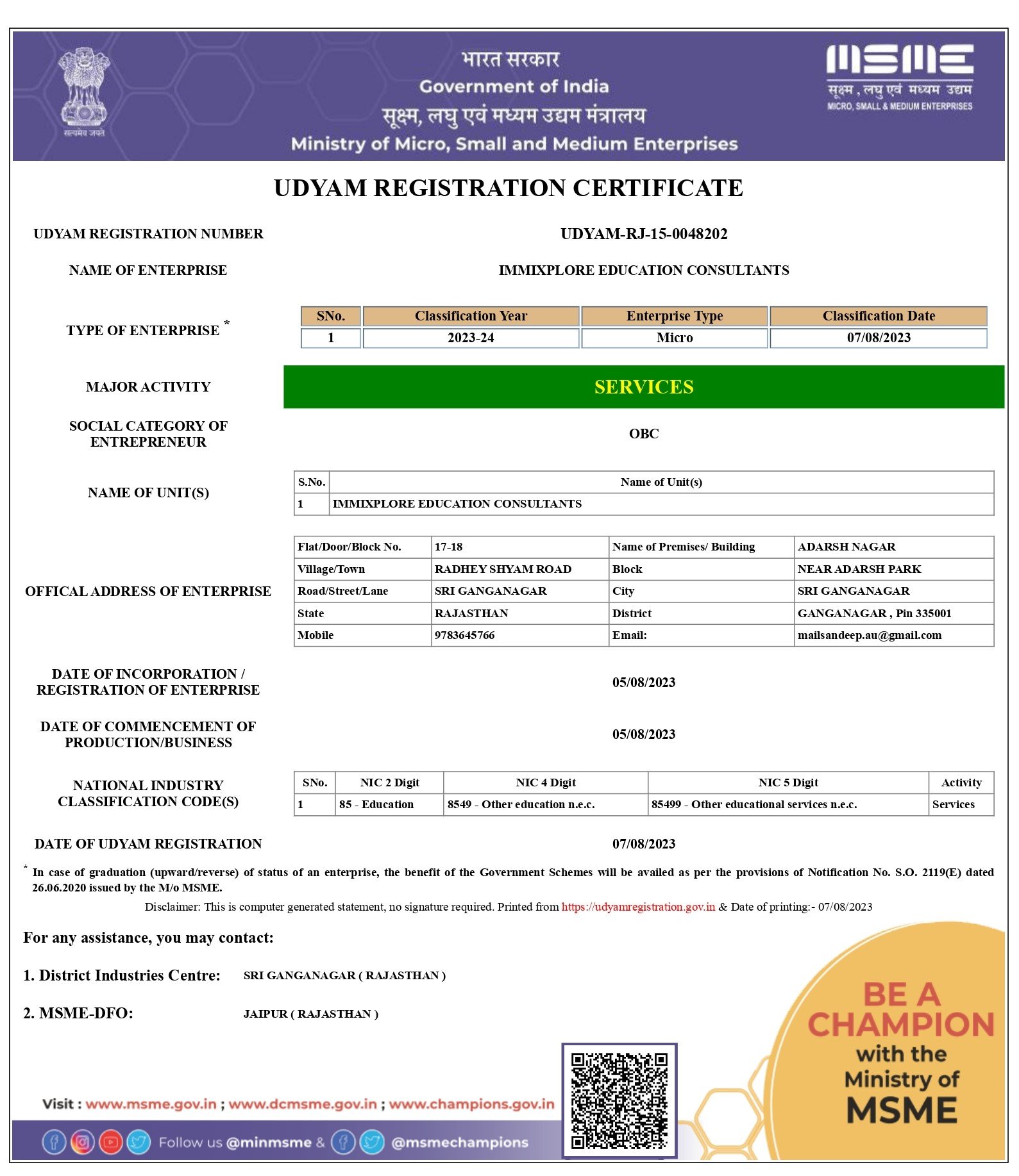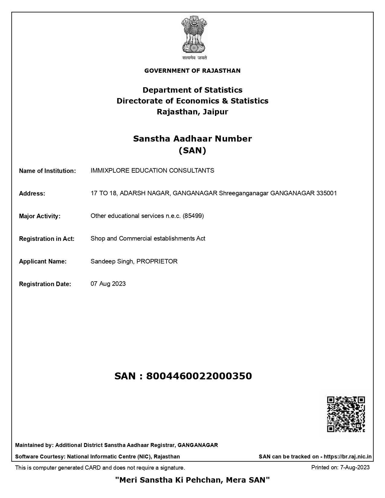 ImmiXplore Education Consultants is a leading educational consultancy in Sri Ganganagar, Rajasthan. We help students plan their studies abroad, from choosing the right course to applying for a visa. We also provide support throughout the student's journey, from arrival to graduation. Our team of experienced consultants deeply understands the educational systems in different countries, and we are committed to helping our students achieve their academic goals.